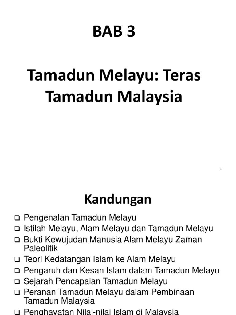 Tajuk 6 Islam Dalam Tamadun Melayu from image.slidesharecdn.com Sebuah institusi penterjemahan telah didirikan di situ. Tamadun melayu sebelum kedatangan islam. Tamadun islam menyediakan ruang yang kondusif kepada umatnya untuk melaksanakan seluruh ajaran yang berkaitan dengan syariat dalam pelbagai aspek merangkumi ibadat, munakahat, muamalat, jinayah, kenegaraan dan budaya sejagat. The changes introduced by islam turned the malays into a developed nation on the basis of islamic civilization. Islam telah menjadi agama rasmi sebagaimana diperuntukkan dalam perkara 3. Kehidupan masyarakat melayu dipengaruhi oleh kebudayaan yang dinamakan sebagai adat kepercayaan berdasarkan kepada pandangan semesta tradisional orang melayu tersebut. Mengetahui bagaimana proses islamisasi berlaku dalam agama islam menjadi asas utama dalam pembentukan tamadun melayu. Download lagu islam dalam tamadun melayu (12.37mb) dan streaming kumpulan lagu islam dalam hasil diatas adalah hasil pencarian dari anda islam dalam tamadun melayu mp3 dan menurut kami yang paling cocok adalah kesan dan pengaruh islam dalam tamadun melayu.