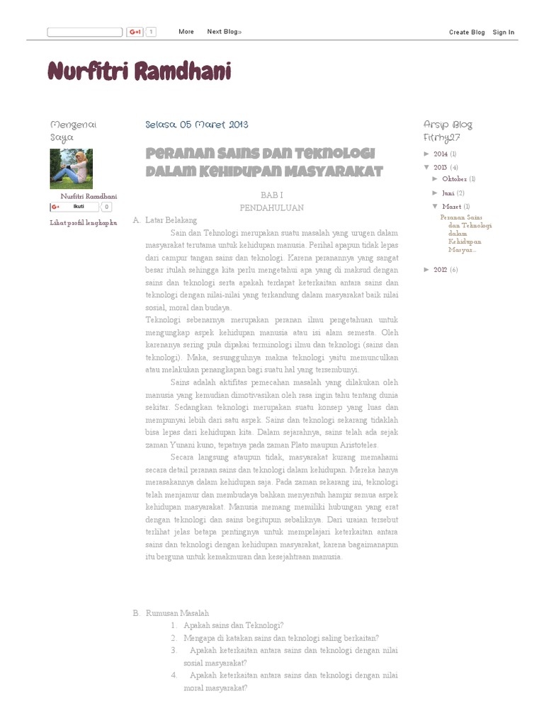 Sains Dan Teknologi Dalam Kehidupan - Sains dan Teknologi Dalam Kehidupan Manusia | DuniaKuMu ... - #teknologi dan kehidupan manusia d.. Sains teknologi membawa kemudahan, kemakmuran dan kenyamanan, sedangkan teknologi komunikasi membuat interdepensi secara global usaha manusia untuk menaklukkan alam melalui sains dan teknologi yang semula bertujuan untuk menyejahterakan kehidupan manusia ternyata. Begitu juga sains dan teknologi telah memberikan pengaruh terhadap peradaban di indonesia. Sehingga tujuan pendidikan dalam mengarahkan peserta didik agar menjadi pribadi yang berintelektual serta ketakwaan yang tinggi dapat terwujud. Isu, cabaran dan penyelesaian islam dan pendidikan alam sekitar etika, moral dan sistem kepercayaan. Perkembangan dan dampak teknologi bagi kehidupan e.