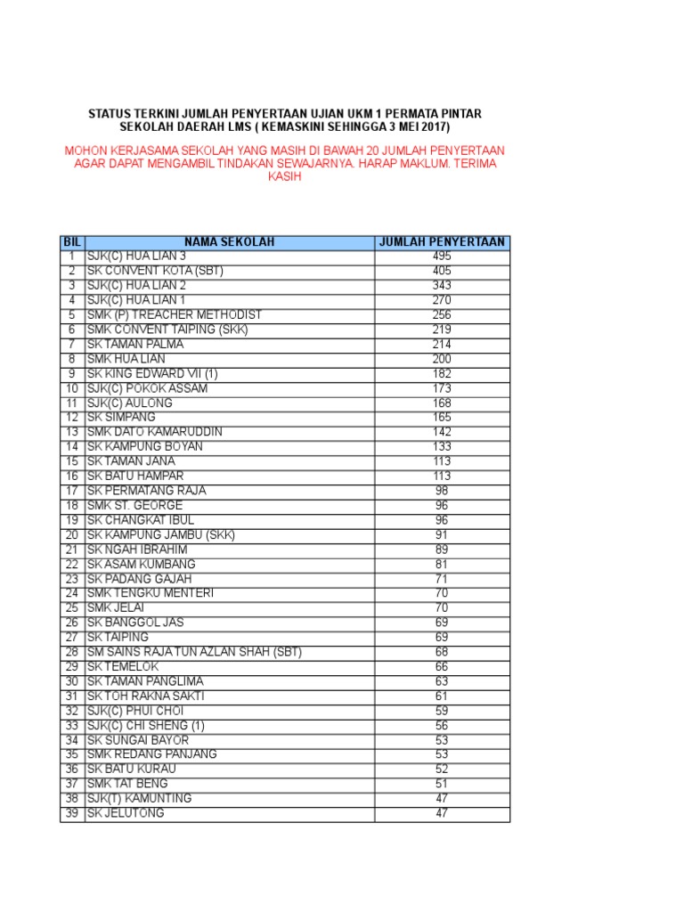 760 x 257 jpeg 37 кб. Adalah dimaklumkan bahawa ujian ukm1 2021 (saringan fasa pertama) program pencarian murid pintar dan berbakat kpm akan bermula dari 1 februari 2021 dan berakhir pada 31 mei 2021. Status terkini jumlah penyertaan ujian ukm 1 permata pintar. Permohonan adalah mengikut jawatan yang dibuka dan tarikh tutup adalah 30 disember 2016. Short film tirani by 3k3 2018 kolej permatapintar negara.