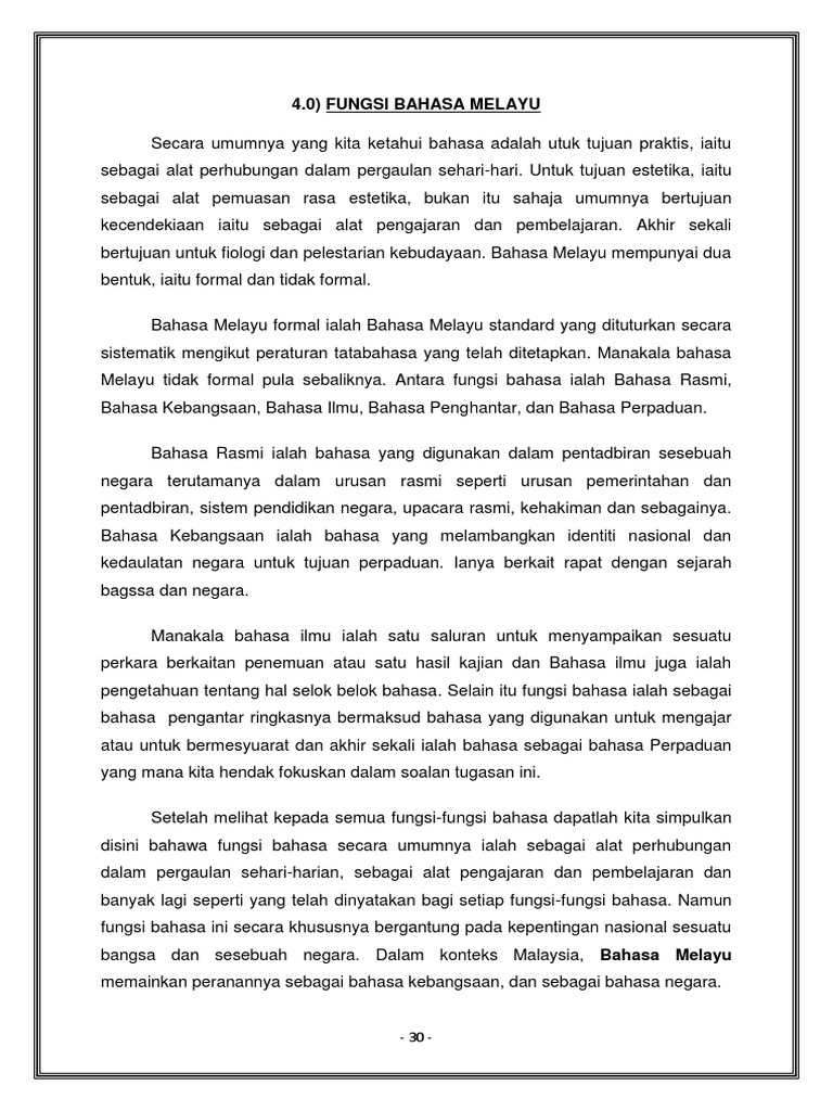 Bahasa Melayu Sebagai Bahasa Perpaduan : Fungsi Bahasa Melayu Bmk Kkbi - 1ebuah perlembagaan 4adangan telah dibentuk leh #ll malaya 4uncil $ 'int #ctin +#m4'#, yang mewakili kaum bukan melayu dan pusat enaga 8akyat +p0.. Bahasa malaysia disebut juga dengan bahasa melayu. Apalagi negara ini terdiri atas puluhan ribu pulau dengan keragaman suku, budaya, dan bahasa daerah. Tujuan:tujuan bahasa melayu dipilih menjadi bahasa kebangsaan adalah untuk mewujudkan identiti dan integrasi nasional melalui bahasa melayu. Sejarah membuktikan bahawa bahasa melayu telah diterima sebagai lingua franca atau bahasa komunikasi utama sejak zaman kesultanan melayu bagaimanakah bahasa melayu boleh berfungsi secara berterusan sebagai bahasa perpaduan? Indahnya bahasa melayu, begitu halus sehingga.